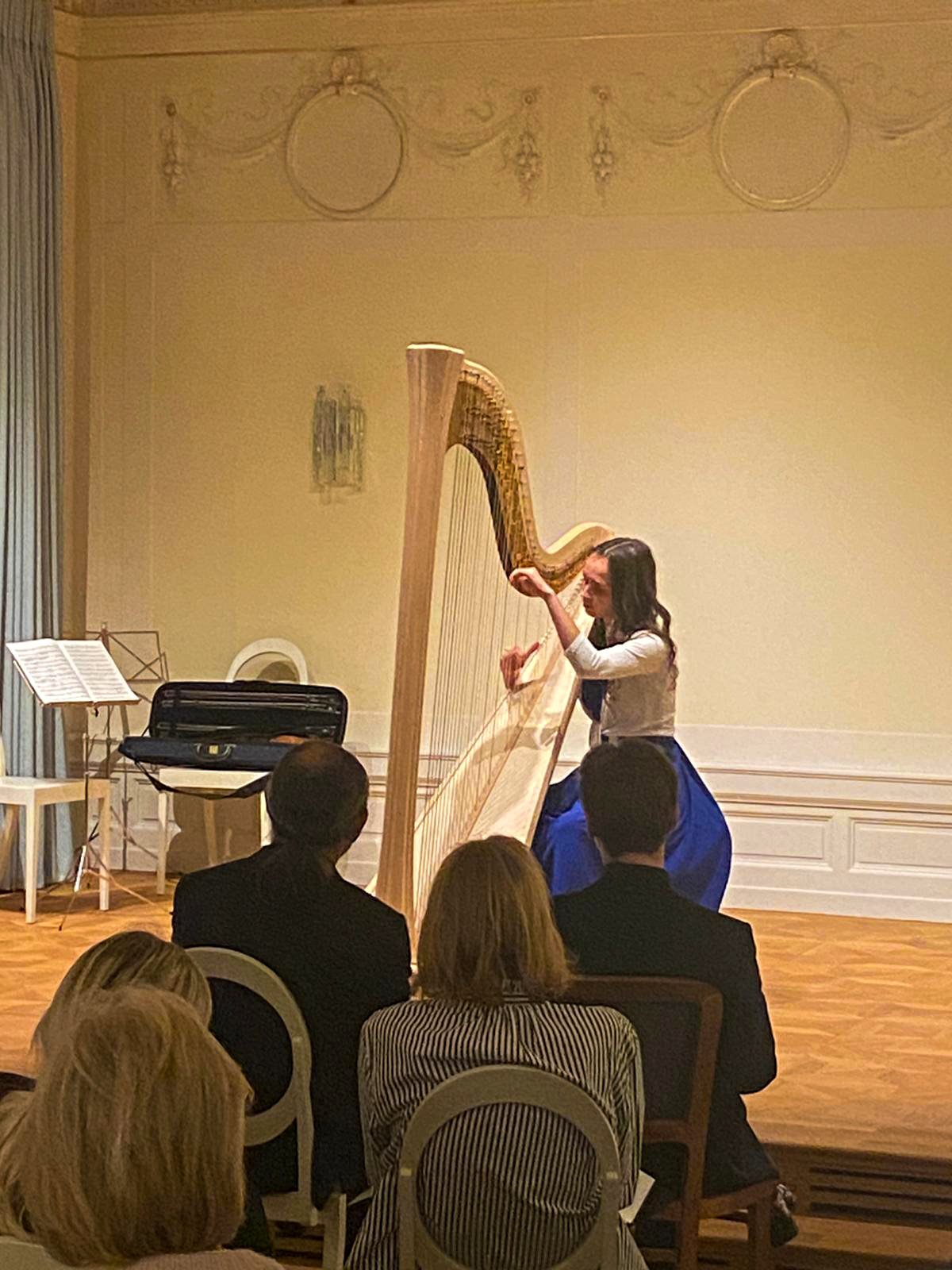 Harpist Nadja Floder impressed the audience with Marcel Grandjany’s Rhapsody, Op. 10, and her own composition, “Longing for Eternity.” She reflected on creating lasting value for society and finding meaning through the balance of idealism and ideology.