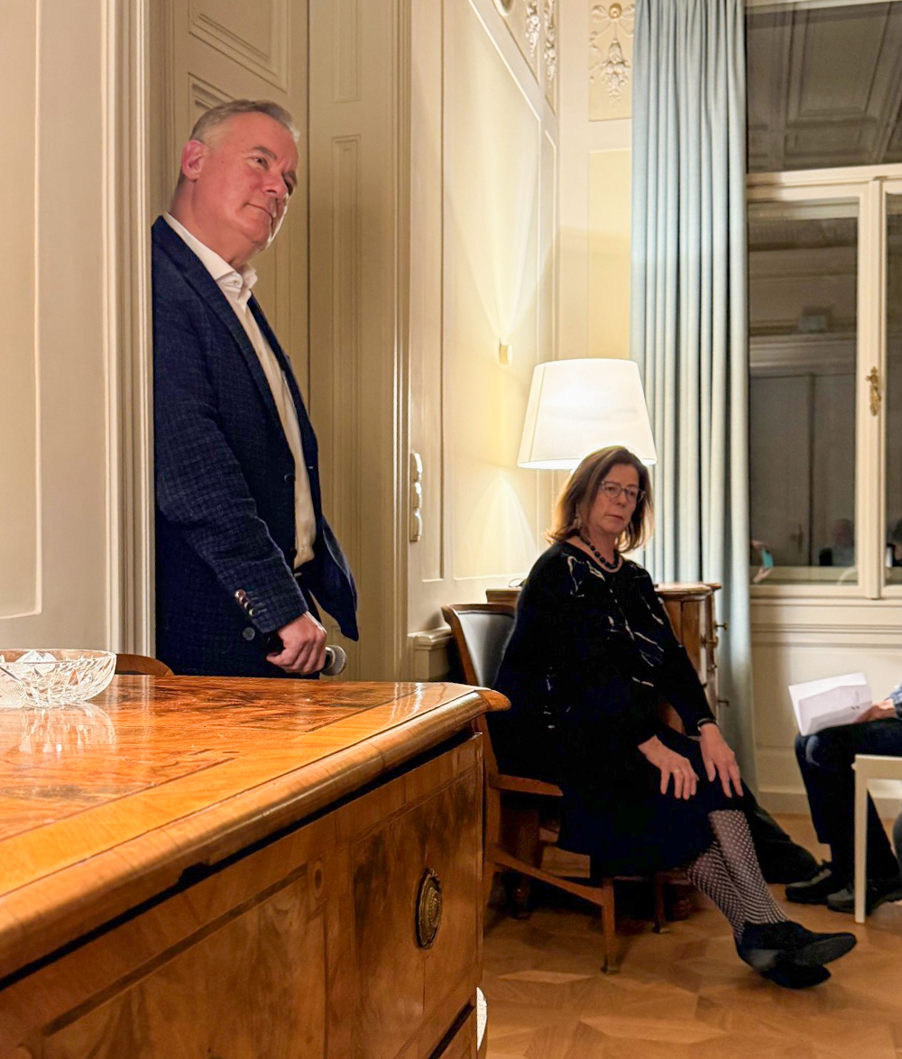 Author Ilija Trojanow followed with a keynote on the disappearance of utopias in today’s world, urging a rediscovery of idealism. A lively audience discussion and Schoenberg’s “Notturno for Strings and Harp” concluded the evening, which continued informally over a get-together.